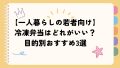 冷凍弁当 【一人暮らしの若者向け】冷凍弁当はどれがいい?目的別おすすめ3選 一人暮らしの若者向け冷凍弁当の選び方を徹底解説!「コスパ・量・味」の3つの目的別におすすめサービスを厳選してご紹介。コンビニ飯に飽きた、食費を節約したい、でも栄養は気になる…そんなあなたの悩みを解決します。 2025.08.26 冷凍弁当